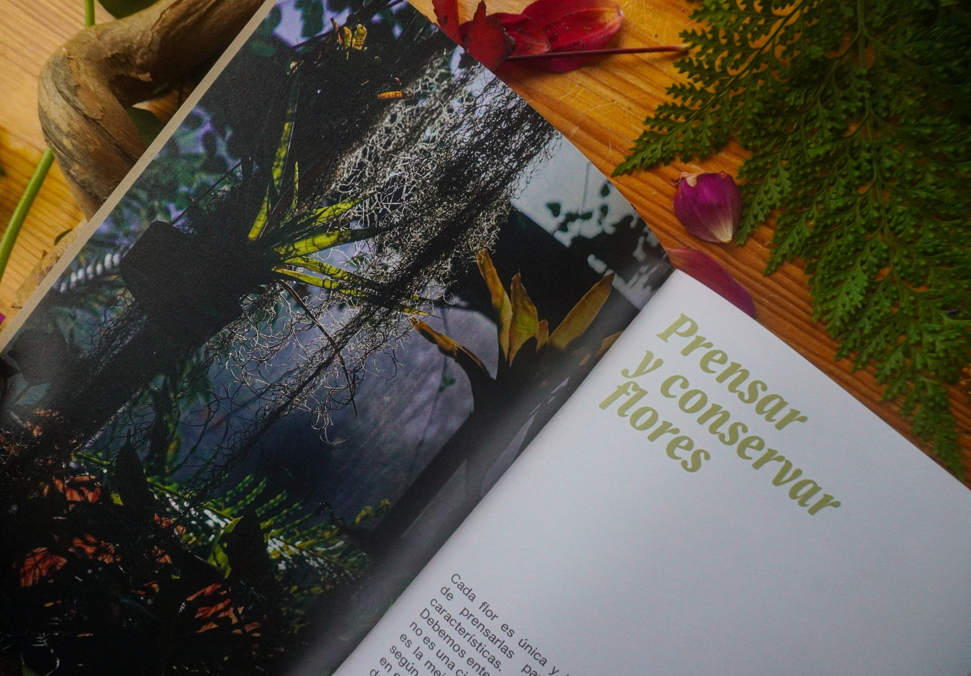 Cada hoja y flor ha sido escogida de manera ecoconsciente. Tras ser recolectada se prensan o secan con cristales. Este paso requiere paciencia ya que pasarán entre dos y tres semanas hasta que puedan ser tratadas.